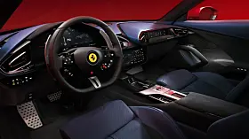 Innvendig er det fremdeles separate display for fører og passasjer, som sitter inni sine egne klart definerte avdelinger. Men her har Ferrari også plassert en større skjerm i midten av dashbordet.