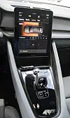 Som Tesla startes ikke Polestar 2 med nøkkel eller startknapp. Det holder å ha nøkkelen i lommen, sette seg inn i bilen, legge inn Drive og ta i vei. Girvelgeren er naturligvis ikke i Orrefors-krystall, men åpen med merkets stjerneinspirerte logo midt i.