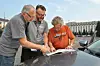 For å unngå steinsprutskader dekkes fronten til med en treplate og støtfangere demonteres. På den måten frakter en person med seg to biler. Blir billigst slik, sa en russer til oss.