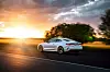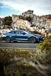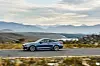 Sett fra siden, domineres designen av de korte overhengene, markante hjulbuer, den lange døren med rammeløst vindu, skarpe linjer, karosseriet og den fallende taklinjen.