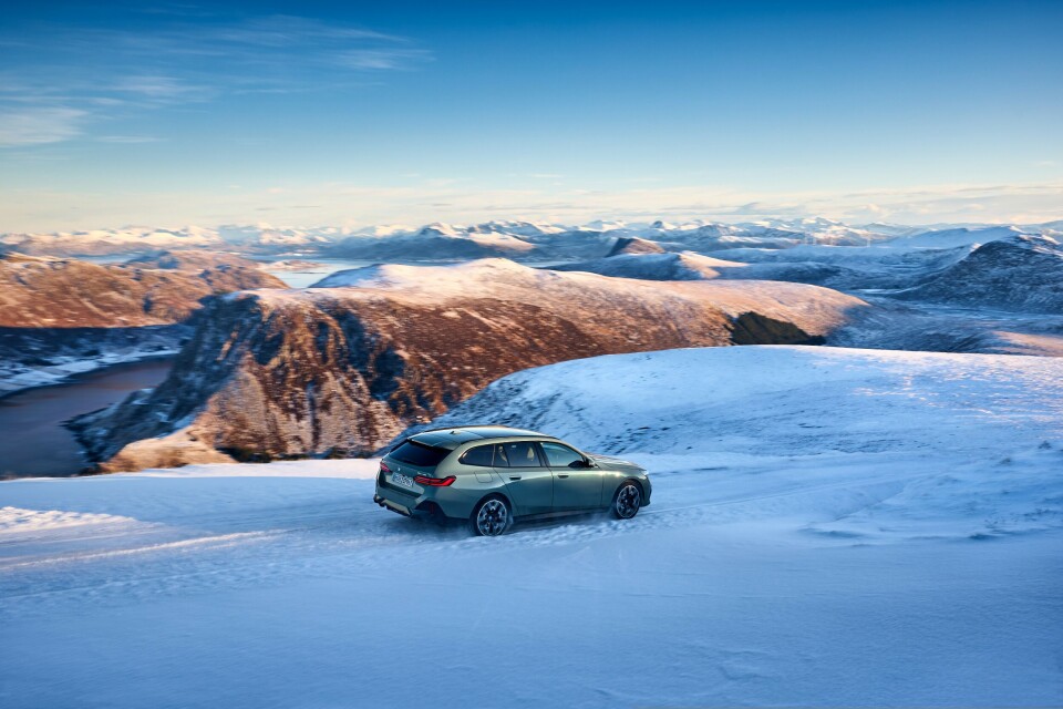 Når BMW i5 Touring ruller inn i messehallen for eCarExpo, er det likevel ikke første gang den får norsk jord under hjulene. Rett før jul var et annet eksemplar på hemmelig besøk i Norge. Da ble nemlig de offisielle pressbildene tatt blant norske fjell og hav.