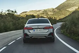 BMW i5 eDrive40 sender kreftene til asfalten på typisk BMW-maner med bakhjulsdrift. Den elektriske motoren på bakakselen genererer full ytelse på 250 kW/340 hk, med maksimalt dreiemoment på 430 Nm når Sport Boost eller Launch Control-funksjonen aktiveres.