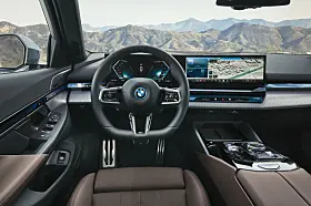 Cockpiten til den nye BMW 5-serien har et betydelig redusert antall knapper og kontroller sammenlignet med sine forgjengere. BMW Curved Display og det nye infotainment-systemet, BMW Operating System 8,5, byr på en rekke digitale funksjoner i en ny menystruktur.