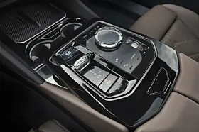 Den bakgrunnsbelyste funksjonsenheten med sin særegne overflatestruktur, kjent fra nye BMW i7, strekker seg over hele instrumentpanelets bredde langt inn i dørpanelene og inkluderer berøringsfølsomme kontrollpaneler.