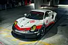 Selv om Porsche 911 RSR er splitter ny, er fargesammensetningen den samme som vi kjenner fra tidligere – hvitt, rødt og sort på fabrikkbilene.