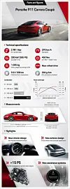 911 Carrera Coupe sprinter til hundre på 4,2 sekunder og har en potensiell toppfart på 293 km/t. Utstyrer du bilen med Sport Chrono-pakke barberer du den tiden med to tideler. Med slike ytelser er det beundringsverdig at man oppnår et snittforbruk på 0,9 liter på mila.