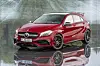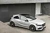 Toppmodellen følger det nye navnesystemet til Mercedes og heter nå Mercedes-AMG A 45. Den har en effekt på 381 hestekrefter og et dreiemoment på 475 Newtonmeter. Den tar deg til 100 på 4,2 sekunder, fire tideler raskere enn forgjengeren.