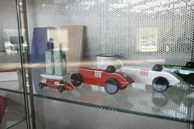 I hver sin ytterkant står to rekker med mange av de viktigste modellene, samt en god del gøyale konseptbiler, fra henholdsvis Fiat og Lancia, mens den midtre delen er delt inn i åtte tematiske grupper med åtte utvalgte biler i hver.
