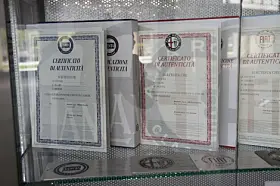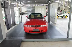 På skiltet utenfor hoveddøra finner man også Alfa Romeo-logoen, men disse bilene skal fortsatt ha tilhold i de relativt nyåpnede lokalene til Museo Storico Alfa Romeo i Arese utenfor Milano.