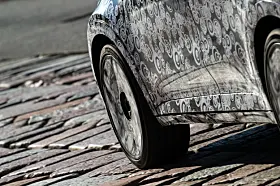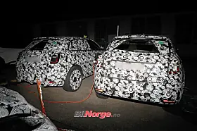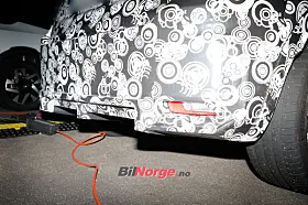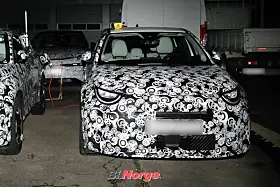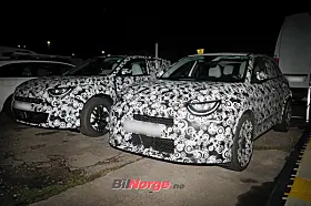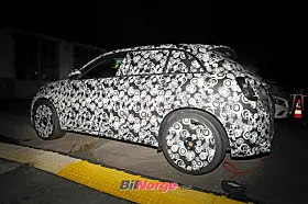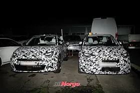 På bildene fra vårt byrå er Abarth-modellen parkert ved siden av en ordinær Fiat 600e, og på tross av kamuflasjen er vi at den er senket og får en rekke spesiell stylingdetaljer. Nye støtfangere foran og bak, bredere skjermer og fete hjul er godt synlige.