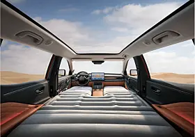 Innvending er skjermen i midten blitt større, og inneholder alle de funksjonene man hadde fysiske brytere til i den første generasjonen. Setene kan legges ned til en to meter lang seng, og du har både et lite kjøleskap og ni høyttalere med deg.
