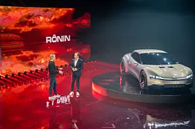 Fisker Ronin ble presentert som verdens første helelektriske firedørs åpne GT sportsbil med detaljer som fem seter, fire «sommerfugl-dører», karbonfiber hardtop, hi-tech luksusinteriør og futuristisk eksteriørdesign.