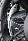 De åtte trinnene i automatkassen skiftes manuelt med hendler på rattet. I girvelgeren ligger bremsefunksjon som burde vært litt kraftigere.