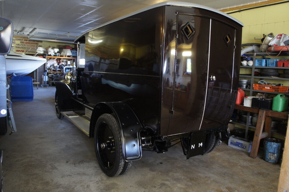 Den bilen vi snakker om en er stor 1913 modell Renault som Freia i Oslo fikk bygget et helt spesielt varekasse-karosseri på.