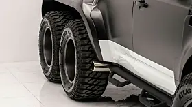 World Ender er utstyrt med luftfjæring som kan heve og senke bilen med 20 cm. Hevingen, sammen med skjermer som er breddet med 60 cm, gir plass til 38-tommers hjul montert på 20-tommers felger. Buer som dekker planet, en kufanger, takstativ samt sidesteg oppsummerer de eksteriøre endringene.