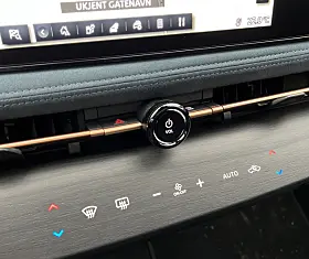 Fiks å se på er Ariya også, mens interiøret byr på en blanding av forholdsvis tradisjonell skjermløsning i kombinasjon med utradisjonelt materialvalg og så godt som fravær av blanke flater. Strukturen på deler av dashbordet og midtkonsollen inneholder ikke bare klimaanleggbetjening og noen kjørefunksjoner, men gir samtidig den gode opplevelsen det er å ta på treverk.