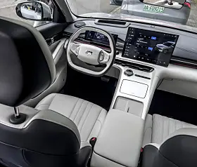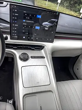 Selv om også Geely har falt langt ned i den skjermbaserte gryta, har de i det minst latt fire knapper for å betjene enkle klimaanleggfunksjoner overleve på den store midtkonsollen. Egen instrumentskjerm har EX5 også i tillegg til headupdisplay. Ikke alle medlemmene i Geely-familien fikk det i fødselsgave.