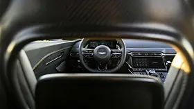 Interiøret er helt nytt og kraftig modernisert med digitale skjermer for instrumenter og infotainment. Sistnevnte er utviklet in-house av Aston Martin og erstattet det Mercedes-utviklede systemet Aston Martin har benyttet tidligere. Apple CarPlay og Android Auto er selvsagt på plass.
