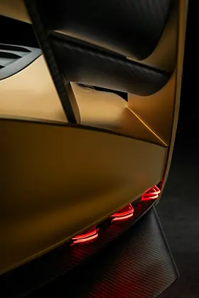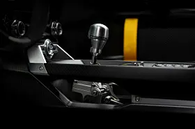 Så godt som hele karosseriet er støpt i karbonfiber – mye ligger eksponert i både eksteriør og interiør, som i dører og senterkonsoll. Recaro Podium stoler og stålbur med ankerpunkter for 4-punkts belter er på plass.