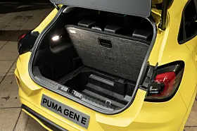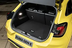 Bagasjerommet, som allerede var klasseledende, har blitt enda større i den elektriske varianten av Puma. Lastet til toppen av seteryggen, med alle fem setene i bruk, er det på hele 523 liter.