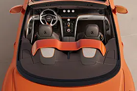 Det elektriske styrte stofftaket åpner seg på 19 sekunder i hastigheter opptil 50 km/t og gir innsyn til et komfortabelt interiør med to seter, og bak disse en unik «air bridge» som demper turbulensen for de som befinner seg om bord.