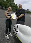 Nicola Walde hadde den gamle kvinnelige rekorden, men nå hadde hun fått et nytt Vehicle, konstruert av partneren, Daniel Fenn. 14 kg veier den såkalte Velomobilen.