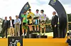 Det er fire pokaler det er snakk om, til han i den gule trøya, vinneren tror jeg. Og så er det en i grønn og en i hvit, som får hver sin. Pluss en som har en trøye der mønsteret ser ut som en svært smittsom hudsykdom.