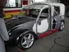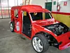 Jeg har sett mange ville 2 CV’er i min tid, men denne tar kaka. Man har tatt en tom varebil-utgave av det franske ikonet og lagt hele drivlinjen til en F 355 i varerommet. Med grei forbindelse til bakhjulene. Vi snakker 380 hester i den avdelingen!