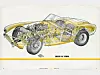 Bilen var opprinnelig engelske ACs sportsvogn som de begynte å bygge i 1953. Rør-ramme, håndbanket alu-karosseri og en smidig seks-sylindret Bristol-motor.