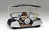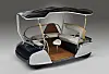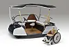Barnet er eldrevet og firehjuls, med plass til fører og flere venner, «bare sett dere ned på en av benkene», mens sjåføren sitter på et pianokrakk-aktig sete og må se fremover.