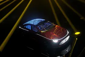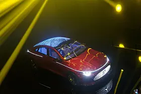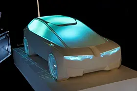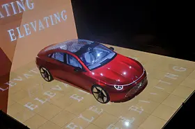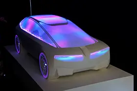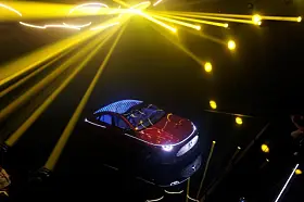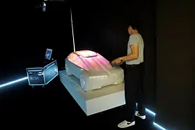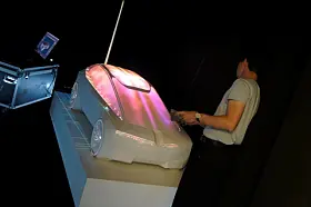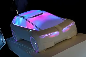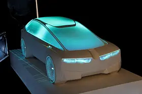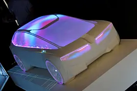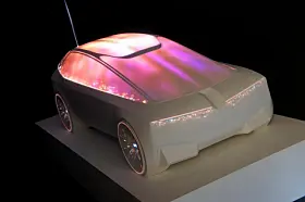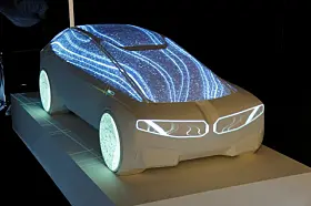 BMW, som også var der, viste noe tilsvarende. Men bilen var ikke større enn en 1:4 modell eller noe tilsvarende, og lyset var ikke ment som show, men som hjelp til designerne. Her var det lasernøyaktige lyskilder som ble rettet mot bilen for at man skulle sjekke ut form på lykter eller vindusrammer eller fargekombinasjoner eller hjulåpninger.