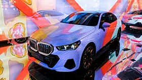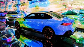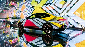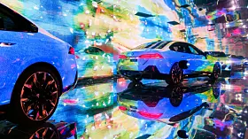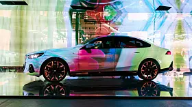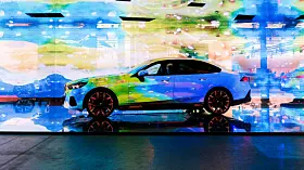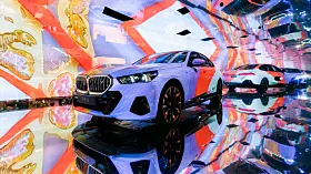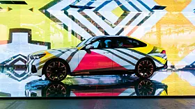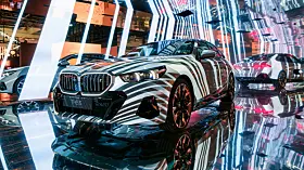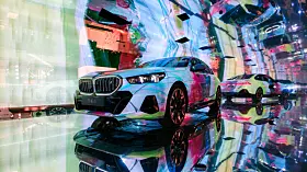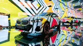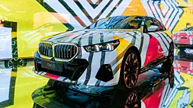 Om det var BMW som fikk ideen – de er jo gode på såkalt Art Cars – eller om det var kunstnerne, aner jeg ikke. Men på Art Basel i år dukket det opp fem kunstnere, Esther Mahlangu, Eric N. Mack, Kohei Nawa, Koo Jiyoon og Bin Woo Hyuk som alle hadde tatt en AI-styrt prosjektor og en BMW i5 og presenterte sine «Electric AI Canvas» på den store kunstutstillingen.