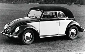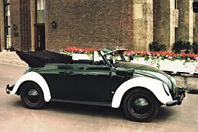 Det vil si – dette er den offisielle historien. Det snakkes ikke mye om den lille førkrigsproduksjonen etter at fabrikken i Wolfsburg ble startet opp i 1938 – men en av de første Boblene derfra var en Cabriolet som ble gitt til Hitler – Boblas viktigste sponsor.