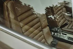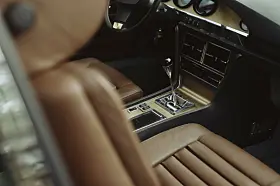 Interiøret smaker av skikkelig 70-tall med brede, tobakkfargede seter med pølspolstring. Resten er imidlertid ikke til å ta feil av, helt 2025, med et ratt som ikke lenger er et ratt men en stikke.