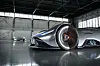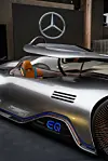 Jeg tviler imidlertid på at produksjonsbilene vil få karosseri i karbonfiber, som denne har. Men kanskje vil vi kunne få kjøpt EQ-biler lakkert i Alubeam-fargen. Åpenbart valgt her for å bringe tankene tilbake til 30-årenes Sølvpiler.