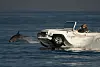 De har plass til 4-5 personer og de gjør 35 knop på bølgene. Bensinmotoren driver også to Mercury Bravo outdrives.