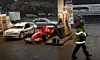 En Formel 1 Ferrari og en WRC-bil side om side. Velkommen til Petter Solbergs "pit stop" blant bensinpumpene på Shell på Mortensrud.