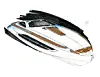 Men her har vi altså en velkjent båtkonstruktør, Luiz de Basto som holder til i Florida, som eier en Aston Martin eller tre, som har tegnet en kjapp skute der han har klart å legge inn noen typiske Aston Martin trekk (du ser grillen i frontruta, midtkonsollen i noen luker, o.s.v.) samtidig som han har klart å døpe den Voyage.