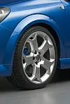 18-tommere med 225/45 R18 dekk er standard, men om ønskelig kan den også spesifiseres med 19-tommere og 235/35 R19, neppe særlig komfortabel på røft underlag. Internt ventilerte skiver er montert på alle hjul med calipere lakkert i OPC-blått og skiver i diameter 321mm foran og 278mm bak.