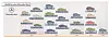 Mercedes er i følge denne oversikten de som har størst trykk på modellutviklingen, med 20 nye modeller – og enda har de ikke tatt med dagens nye V-Klasse! Det er riktignok en del hybridutgaver av kjente modeller her, men – greit nok – vi lar dem telle som nye.