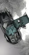 Se på siden av bilen. Antydningen av forskjerm som er lagt utenpå selve karosseriet der det avsluttes bak hjulene.
