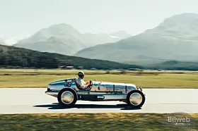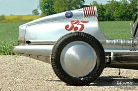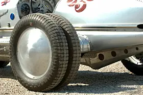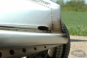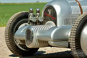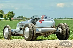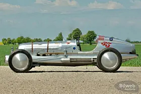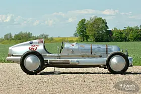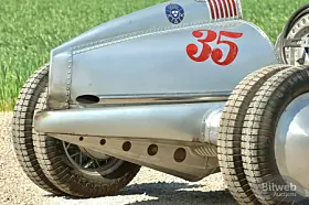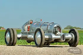 Det er lett å se at det er de tyske Grand Prix bilene fra 30-tallet som har inspirert Billqvist. Dette er tett opp til Mercedes-Benz sin W 35 fra 1934. Og den gjør seg også veldig godt med tvilling-bakhjul, som på bildene.