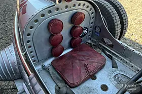 V12 motor, sideventilt, fra en 30-talls Lincoln. Med en spesiell topp fra noe som het Austin (!!), og assistanse av en stor Marchal kompressor – også fra 30-tallet. Den er koblet til en tre-trinns kasse fra en gammel Ford, og det hele bremses av trommelbremser. De foran ble hentet fra en Delage 1924.