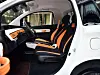 Interiøret er enda mer minimalistisk enn Teslas, men i motsetning til Tesla har den et klart preg av fun og funky med oransje kontraster og et ratt som står i stil.