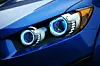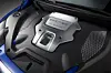 Interiøret er holdt i en blanding av matt og blankpolert sort med blå detaljer.