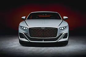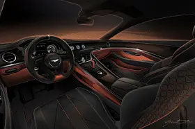 En to-dørs fixed head coupé, bygget på Continental GT chassiset – det med lang akselavstand og hele pakka med tre-kammers luft-fjæring, 48 Volts anti-krengning elektronisk diff. og helt spesielle 22 tommers hjul der bakhjulene også styrer.