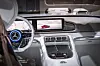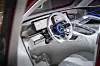Her er det vaffelmønstrede, hvite seter, det er en S-Klasse-type kommando-sentral med to svære skjermer og en høy sentral konsoll, og det er lysende blå elementer overalt for å minne deg om hvor elektrisk miljøvennlig du egentlig er.