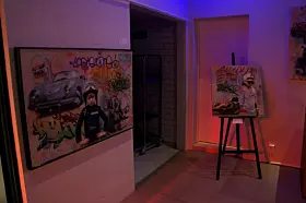 De som var med på happeningen var: Kyle Meyr (foto), Ronny Banks (tegneserie-inspirert), Jonathan Varcoe (først og fremst romantiske Porsche-bilder) og Jan Olav Forberg som maler street art på mikrosement.