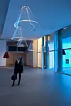 Det er et eller annet med denne type lys”konstruksjoner”, der selve lyskilden er skjult, men der lyset styres gjennom transparente medier og hele tiden skifter kvalitet, som blir hypnotisk fascinerende.