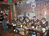 Det hele litt underlig. Inne satt det noen unge herrer og så skikkelig triste ut mens de prøvde å få i seg hver sin kjempekjøttstykke. De så omtrent like glade ut som de du ser på gamle malerier, utsatt for intens absinth-rus. Det er liksom ikke noen Danmarksbåt-begeistring over slikt nei.
